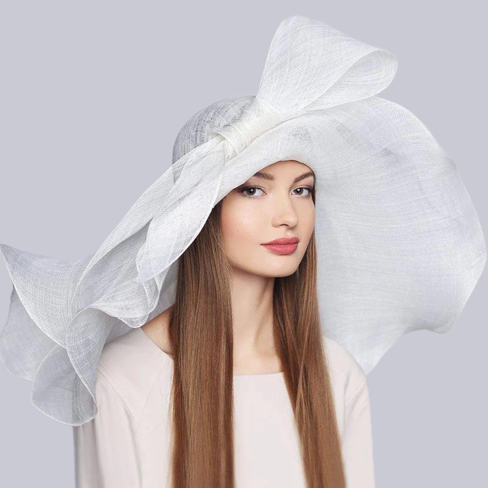 Wedding Hat Double Wide&Floppy Brims with Bow