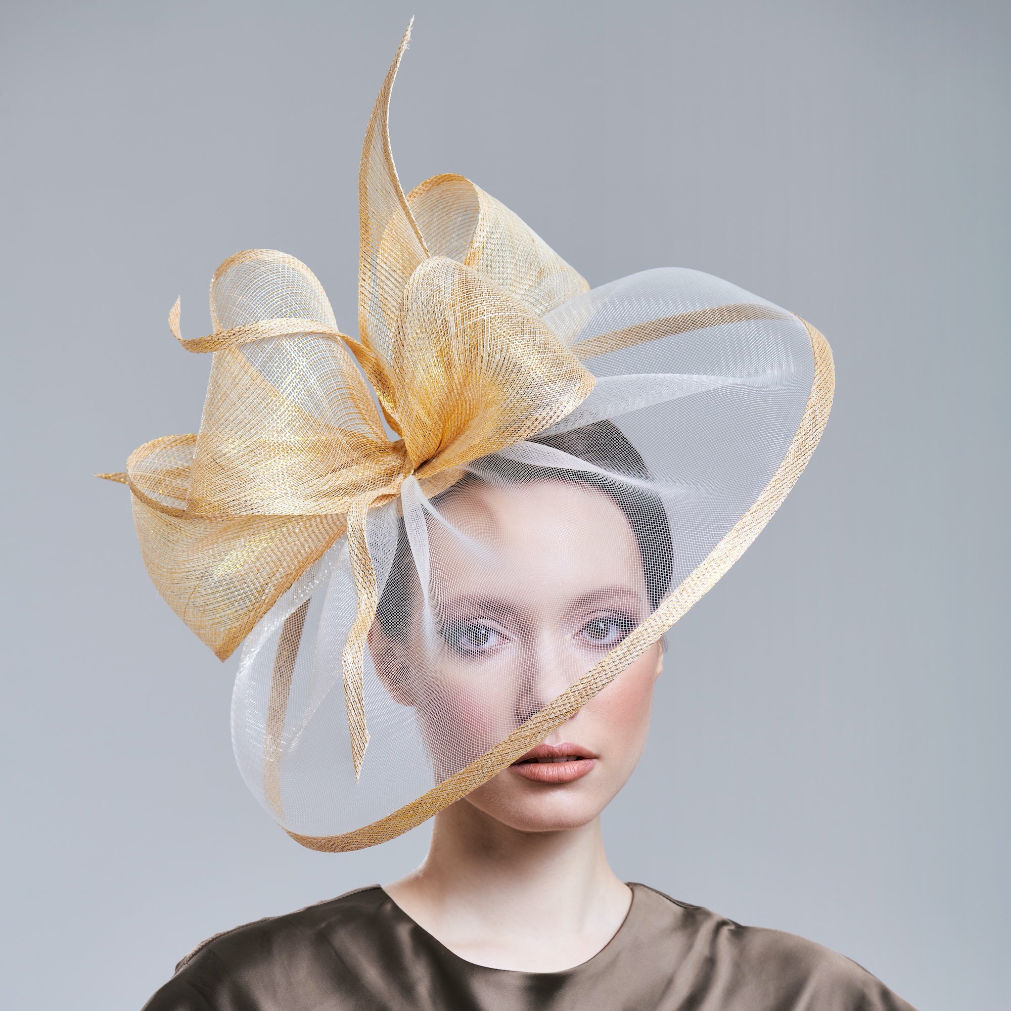 Kentucky Derby Hat Wide&Floppy Double Brim with Gold Flower
