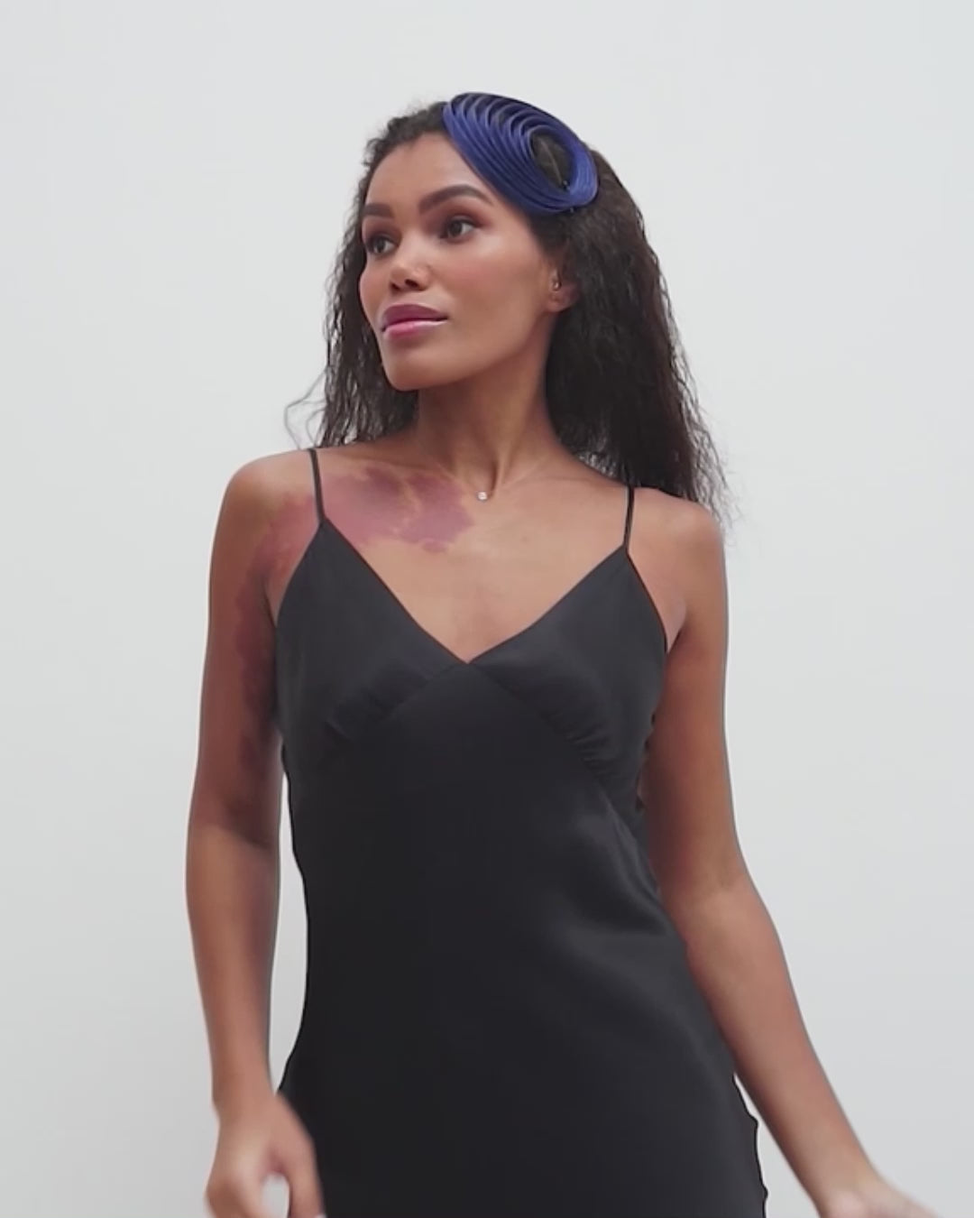 The modern “Helix” design creates a sculptural look that beautifully frames the face and complements both classic and contemporary styles. Lightweight and breathable, this fascinator is comfortable to wear for hours and keeps its elegant shape throughout the day.